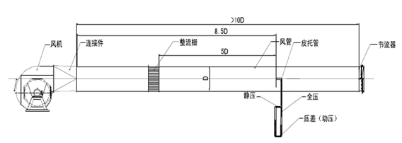 進氣試驗裝置:在風機進氣口端面連接測試風管,而出氣端開向大氣。